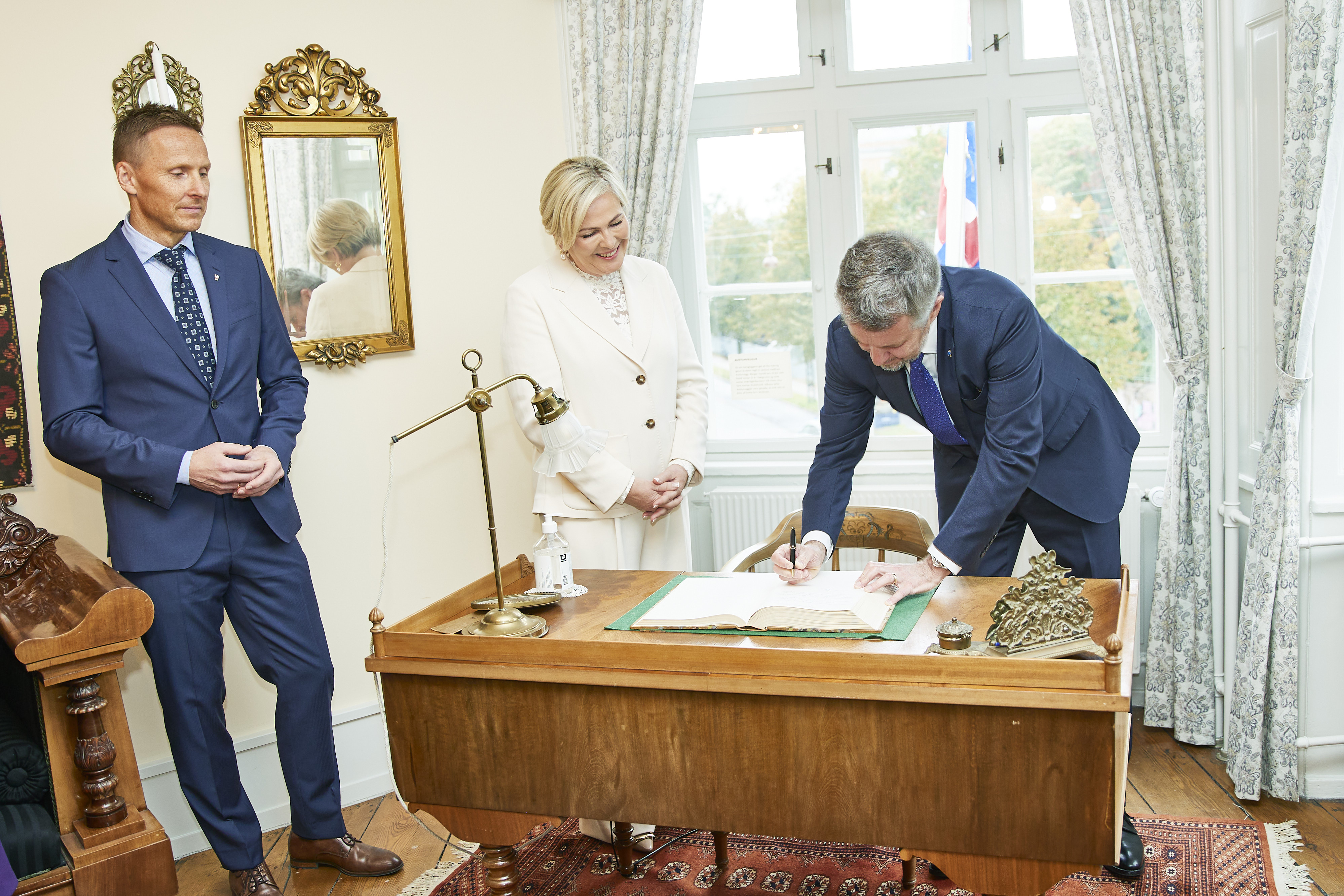 Forseti Alþingis, Birgir Ármannsson, tók á móti hinum opinberu gestum í Jónshúsi ásamt Rögnu Árnadóttur, skrifstofustjóra Alþingis, Auði Elvu Jónsdóttur, formanni stjórnar Húss Jóns Sigurðssonar, og Höllu Benediktsdóttur, forstöðumanni hússins. Auk opinberra sendinefnda var forseta danska þingsins, Søren Gade, boðið í Jónshús af þessu tilefni.