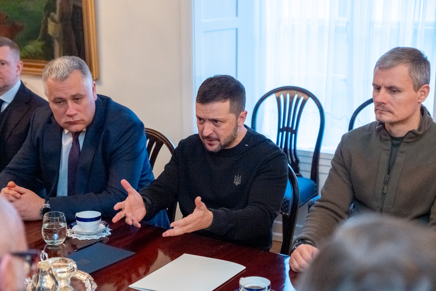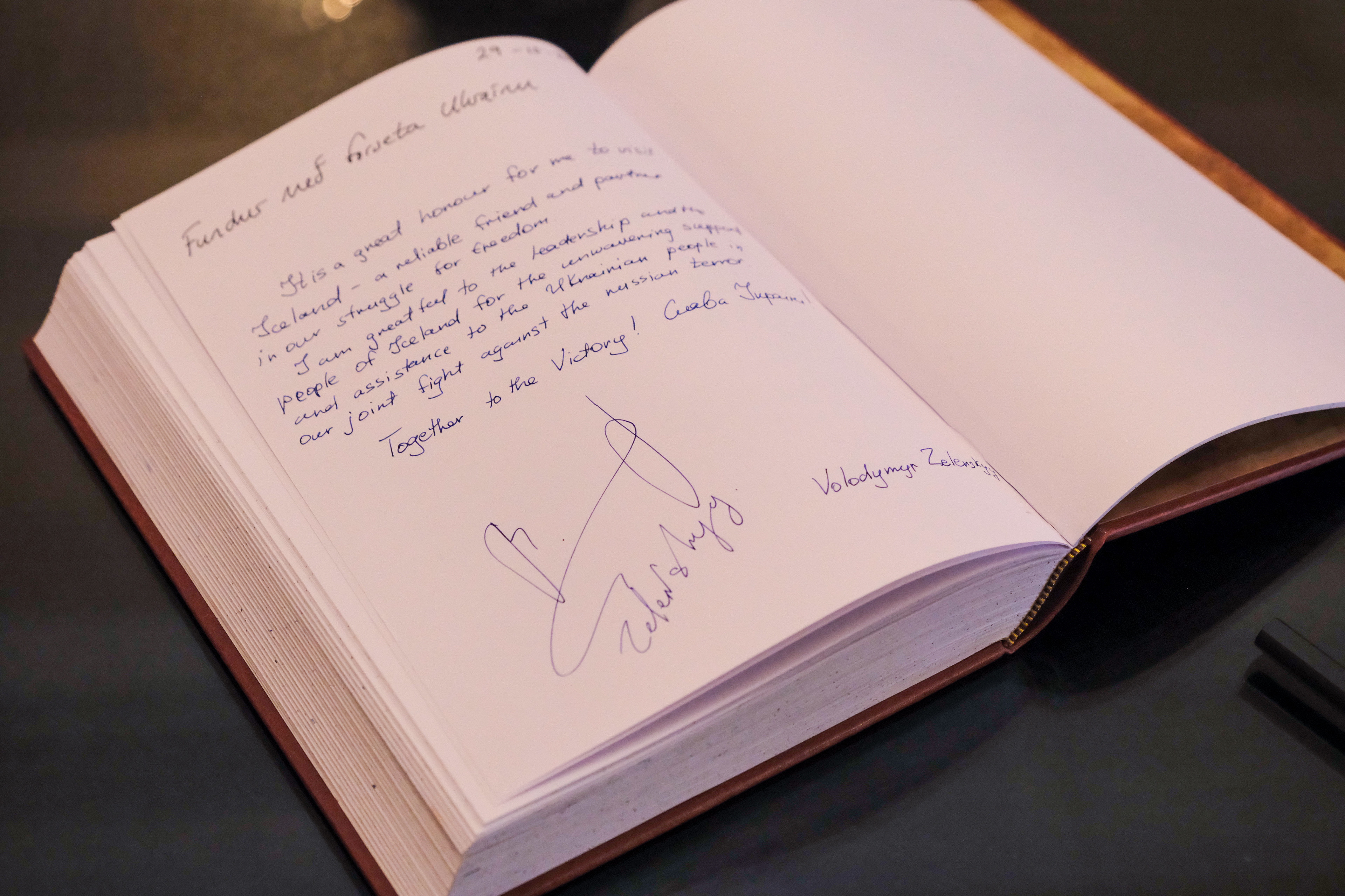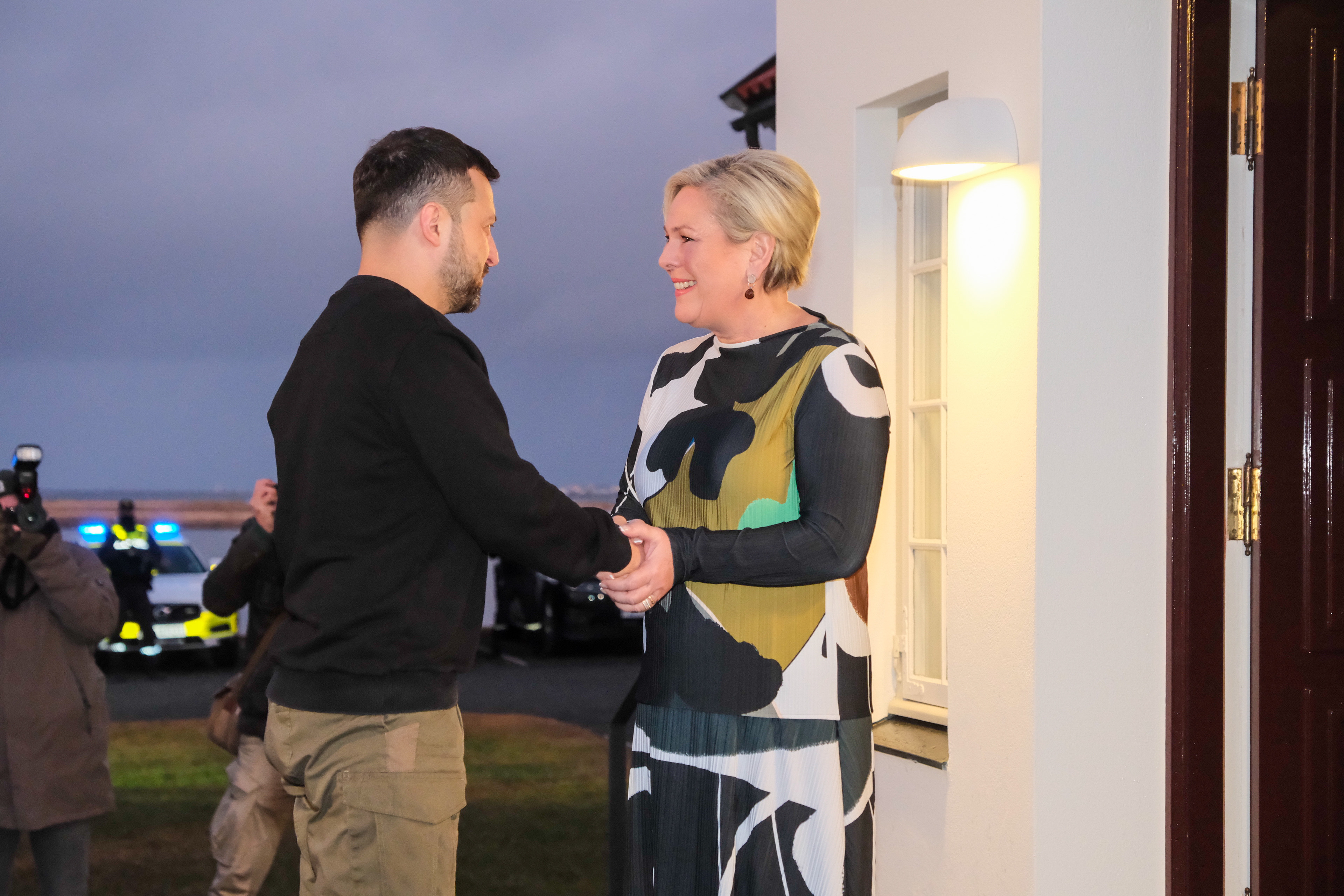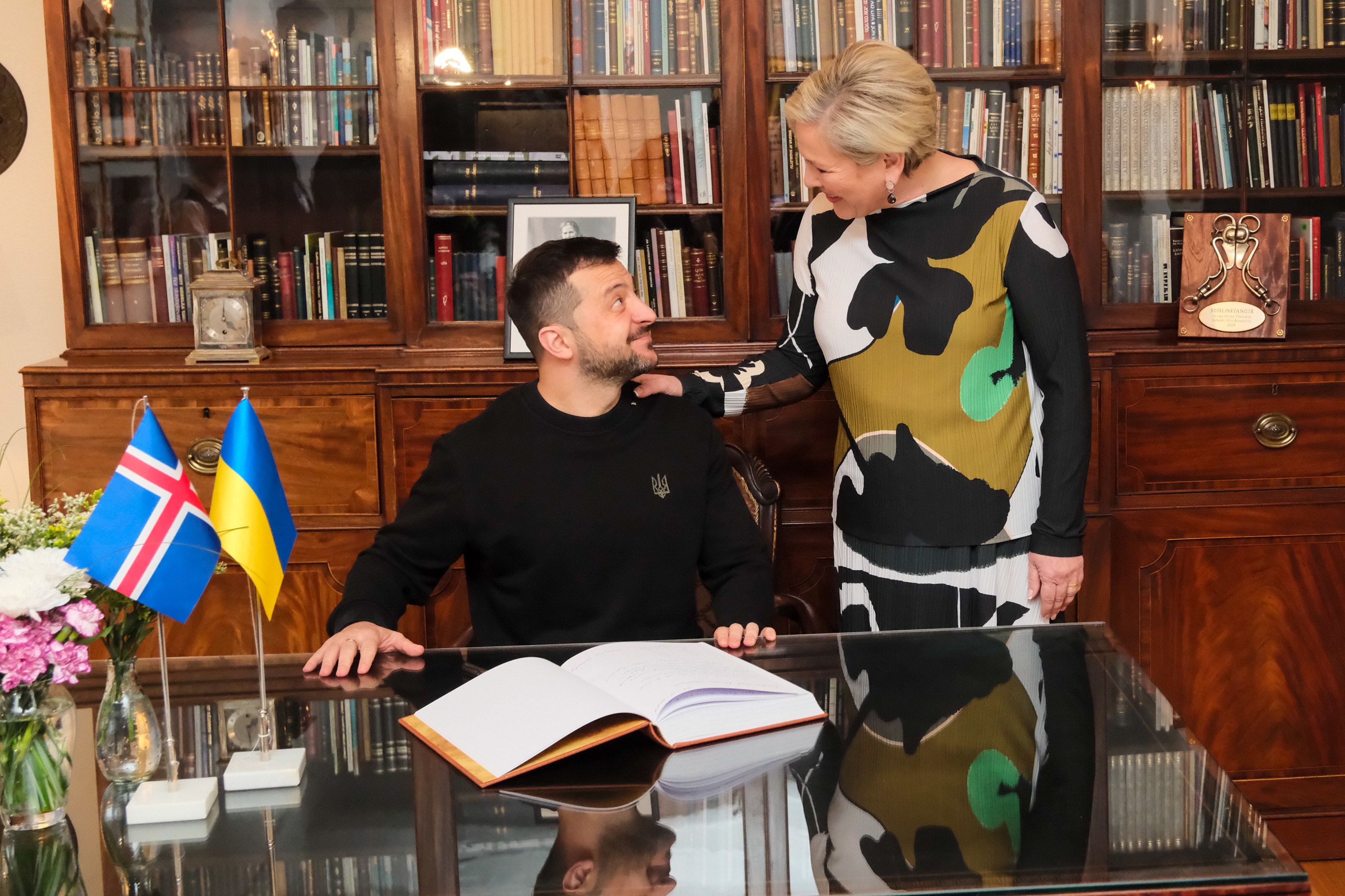 Á einkafundi forsetanna, sem var þeirra fyrsti fundur, áttu forsetarnir samtal á persónulegum nótum, meðal annars um börnin sín. Þá var rætt um ástandið í Úkraínu, áhrif þess og um líðan almennra borgara í landinu. Þau ræddu um ábyrgð þeirra, sem nú fara með völd, á því að tryggja íbúum frið til framtíðar. Þá var rætt um komandi kosningar í Bandaríkjunum, þróun mála í Miðausturlöndum og í alþjóðasamfélaginu og um traust samband Úkraínu við Norðurlönd. Forseti áréttaði stuðning Íslands við Úkraínu og mikilvægi frelsis, sjálfstæðis og virðingar við alþjóðalög.