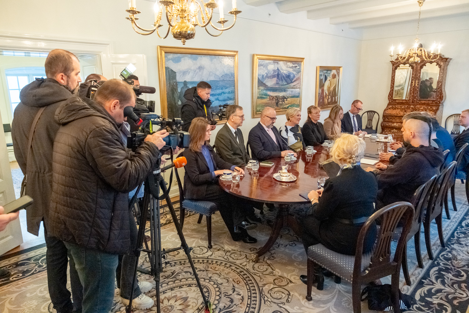Forseti á fund með Volodimír Selenskí, forseta Úkraínu, á Bessastöðum. Selenskí er hér á landi í tilefni af þingi Norðurlandaráðs sem haldið er í Reykjavík dagana 28.-31. október. Yfirskrift þingsins í ár er „Friður og öryggi á norðurslóðum“ og er forseti Úkraínu sérstakur gestur og ávarpar þingið síðar í dag.