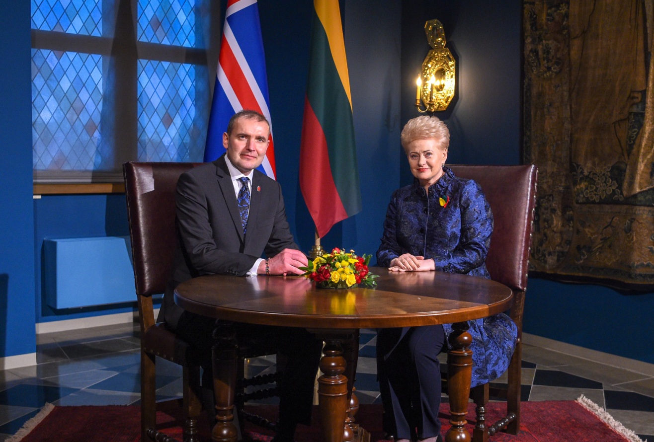Forseti ásamt Daliu Grybauskaite, forseta Litáens, í opinberri heimsókn til Litáens í tilefni af aldarafmæli sjálfstæðis landsins.