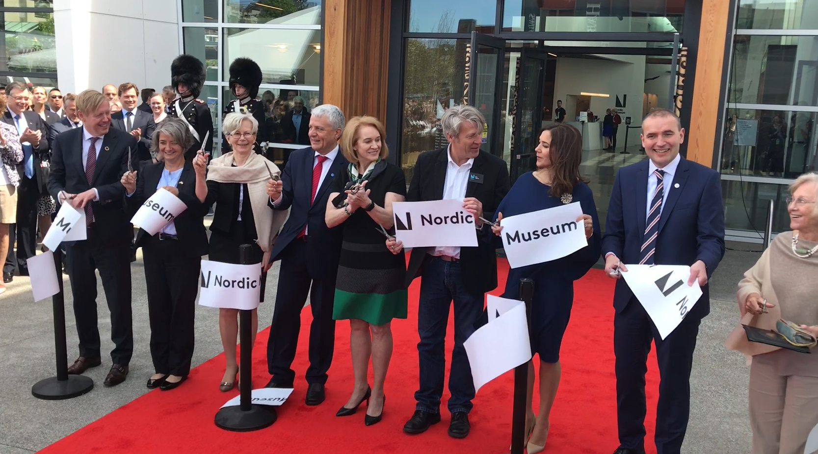 Forseti vígir nýtt Norðurlandasafn í Seattle ásamt Mary Donaldson, krónprinsessu Danmerkur, og fleirum.