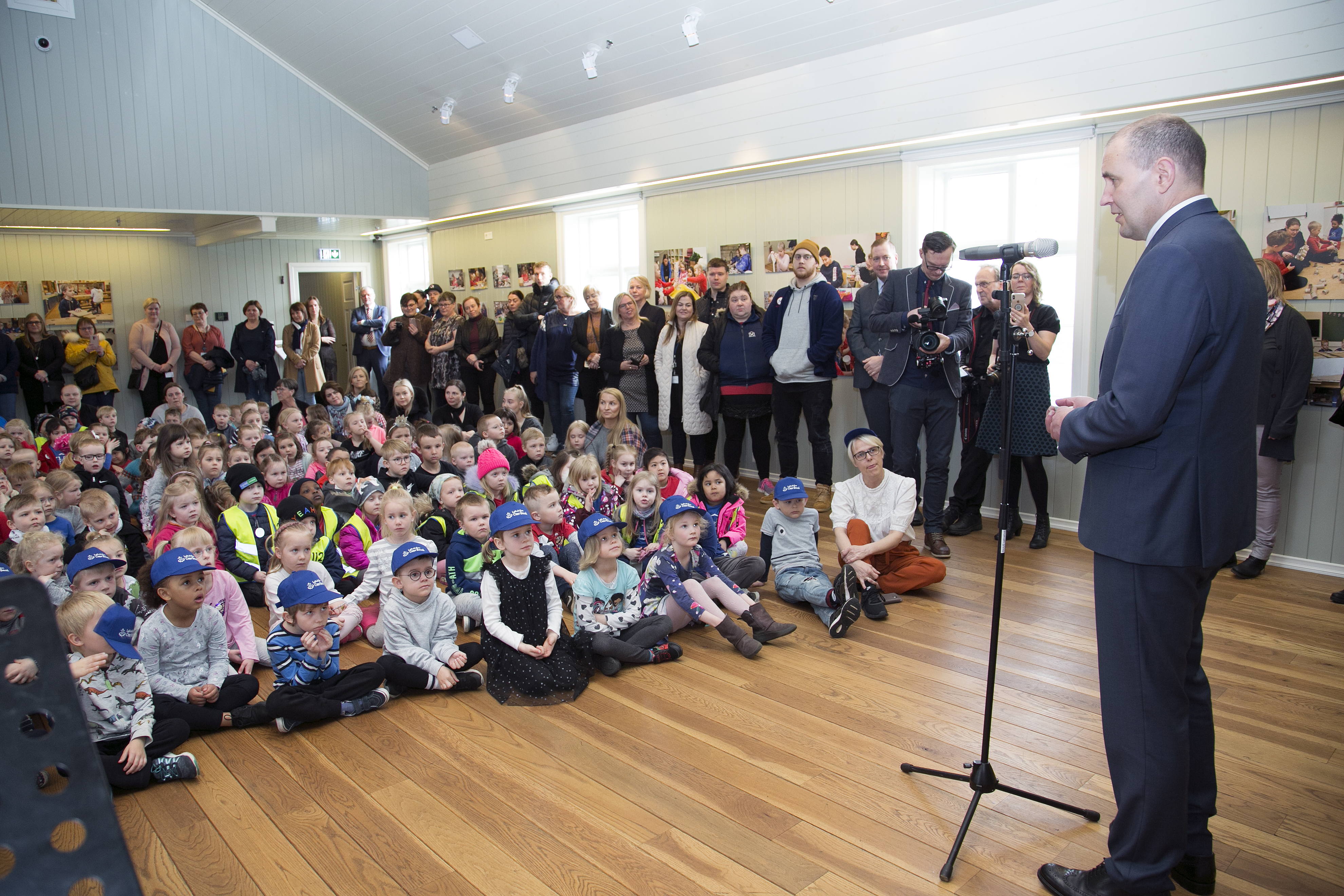 Forseti ávarpar nemendur Garðaskóla í Garðabæ á Forvarnardaginn.