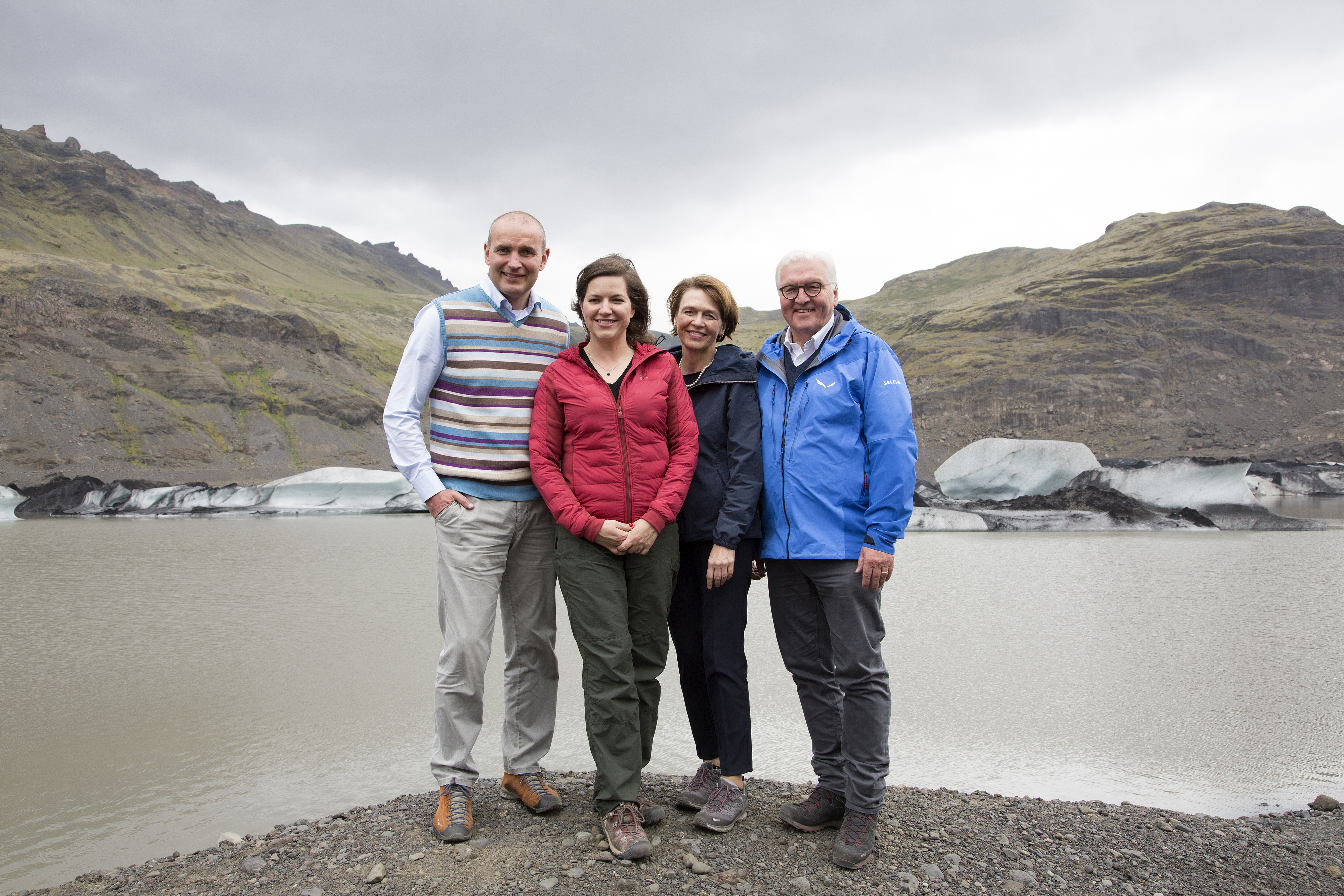 Íslensku forsetahjónin ásamt Frank-Walter Steinmeier, forseta Þýskalands, og Elke Büdenbender forsetafrú við Sólheimajökul.