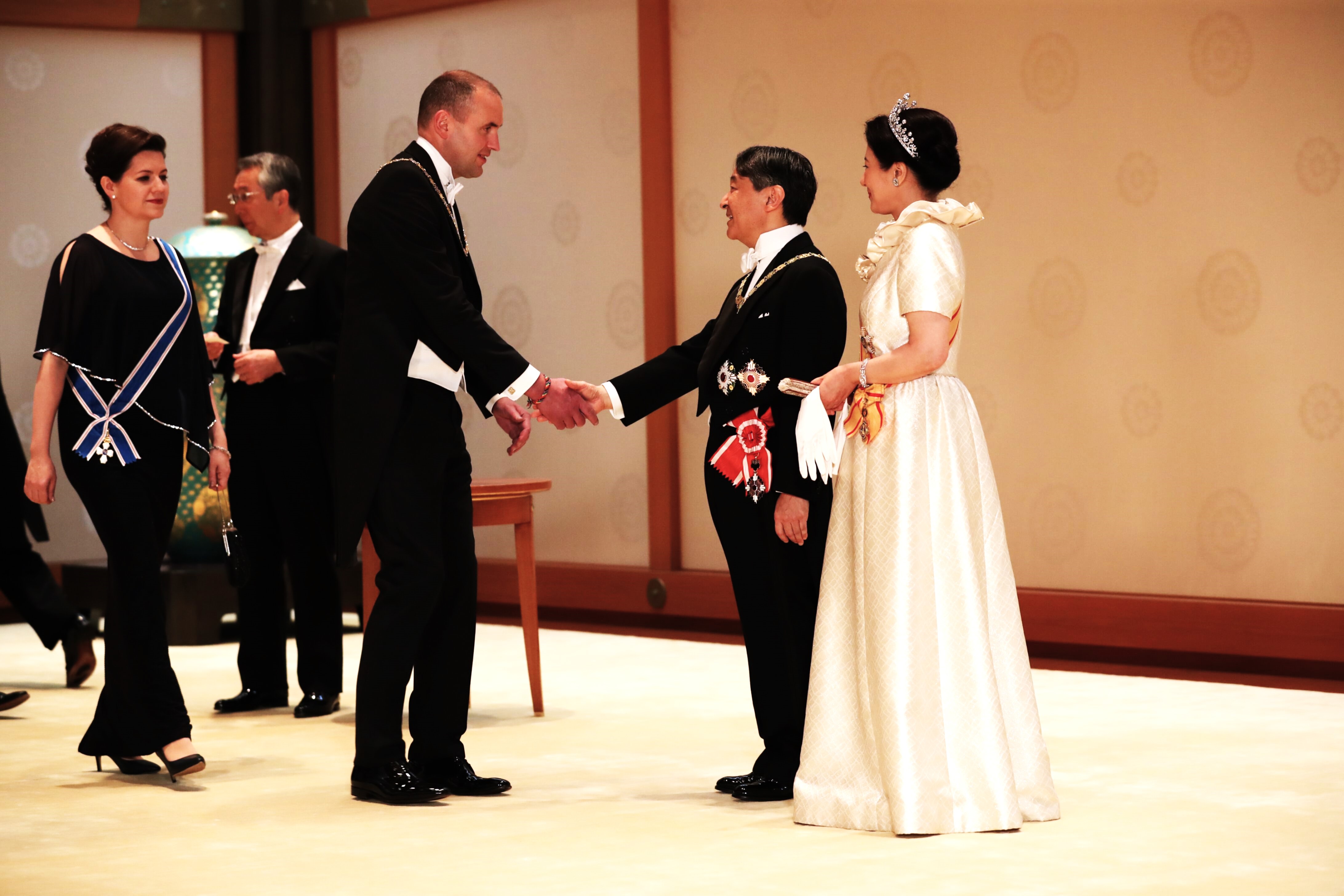 Forsetahjón heilsa keisarahjónum Japans að lokinni krýningu Naruhito Japanskeisara í Tókýó árið 2019.