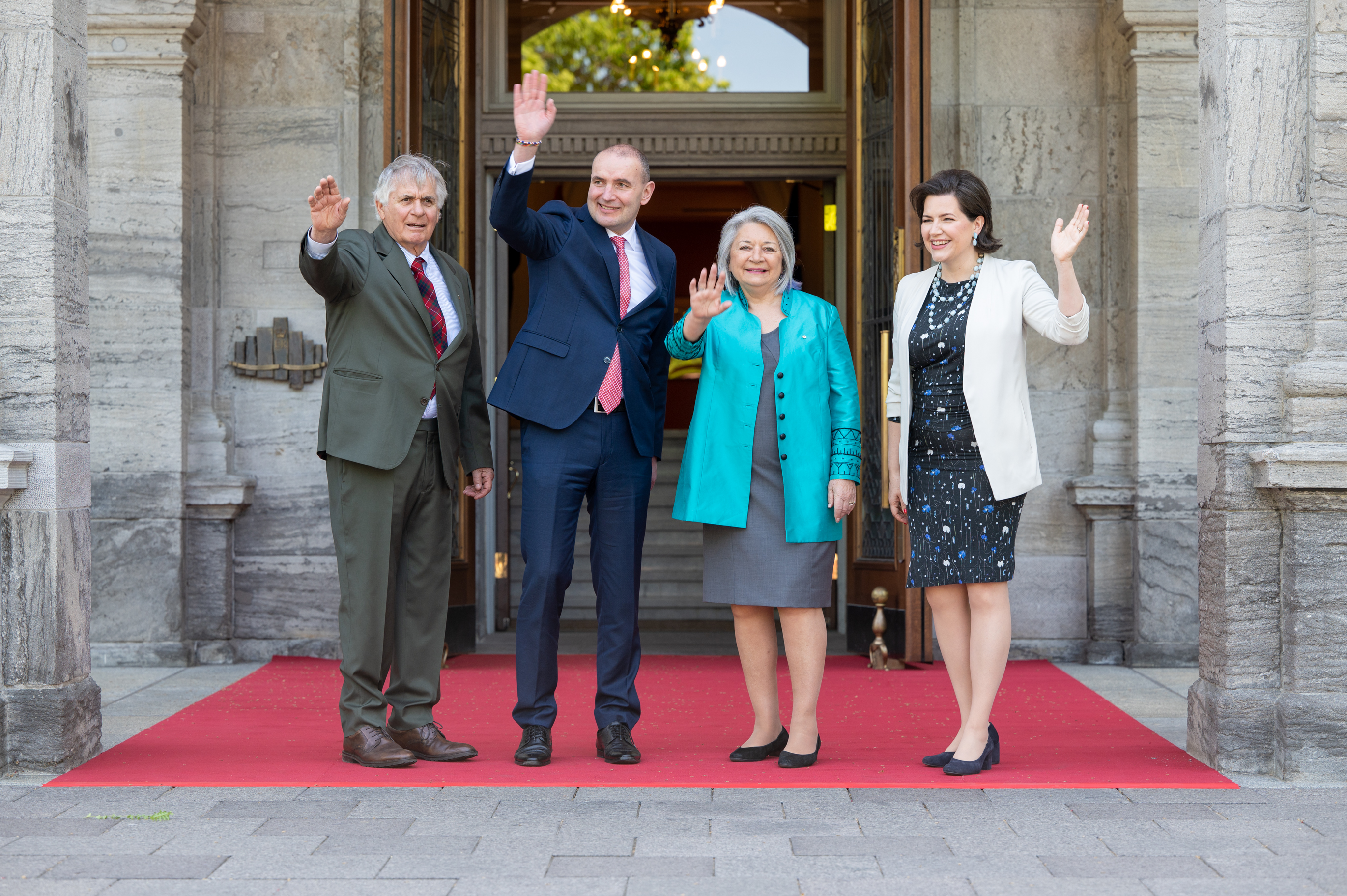 Forsetahjón ásamt Mary Simon, landstjóra Kanada og Whit Fraser, eiginmanni hennar, við upphaf ríkisheimsóknar til Kanada.