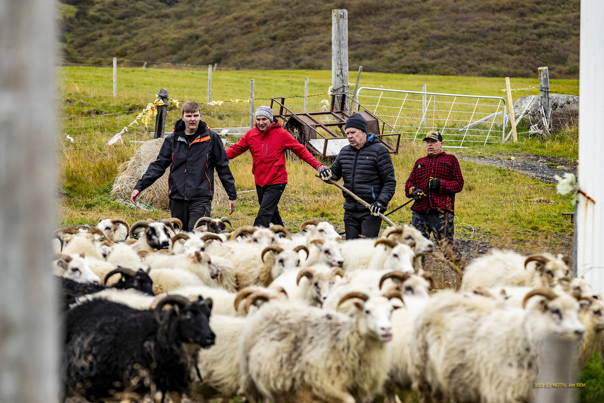 Forseti smalar fé með bændum í Skorradal.
