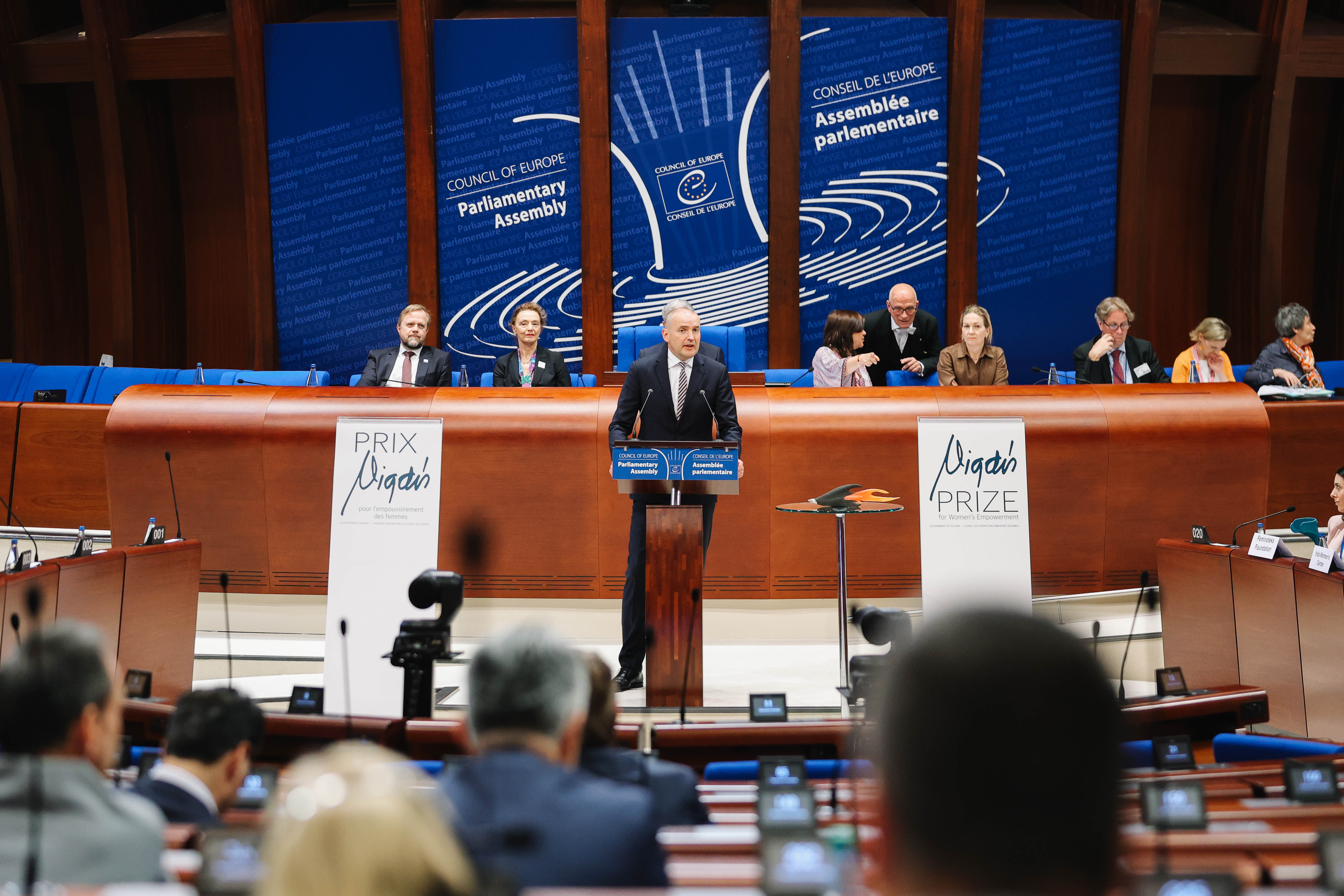 Forseti tekur þátt í afhendingu alþjóðlegra jafnréttisverðlauna í nafni Vigdísar Finnbogadóttur sem veitt voru í Strassborg í Frakklandi í júní 2024.