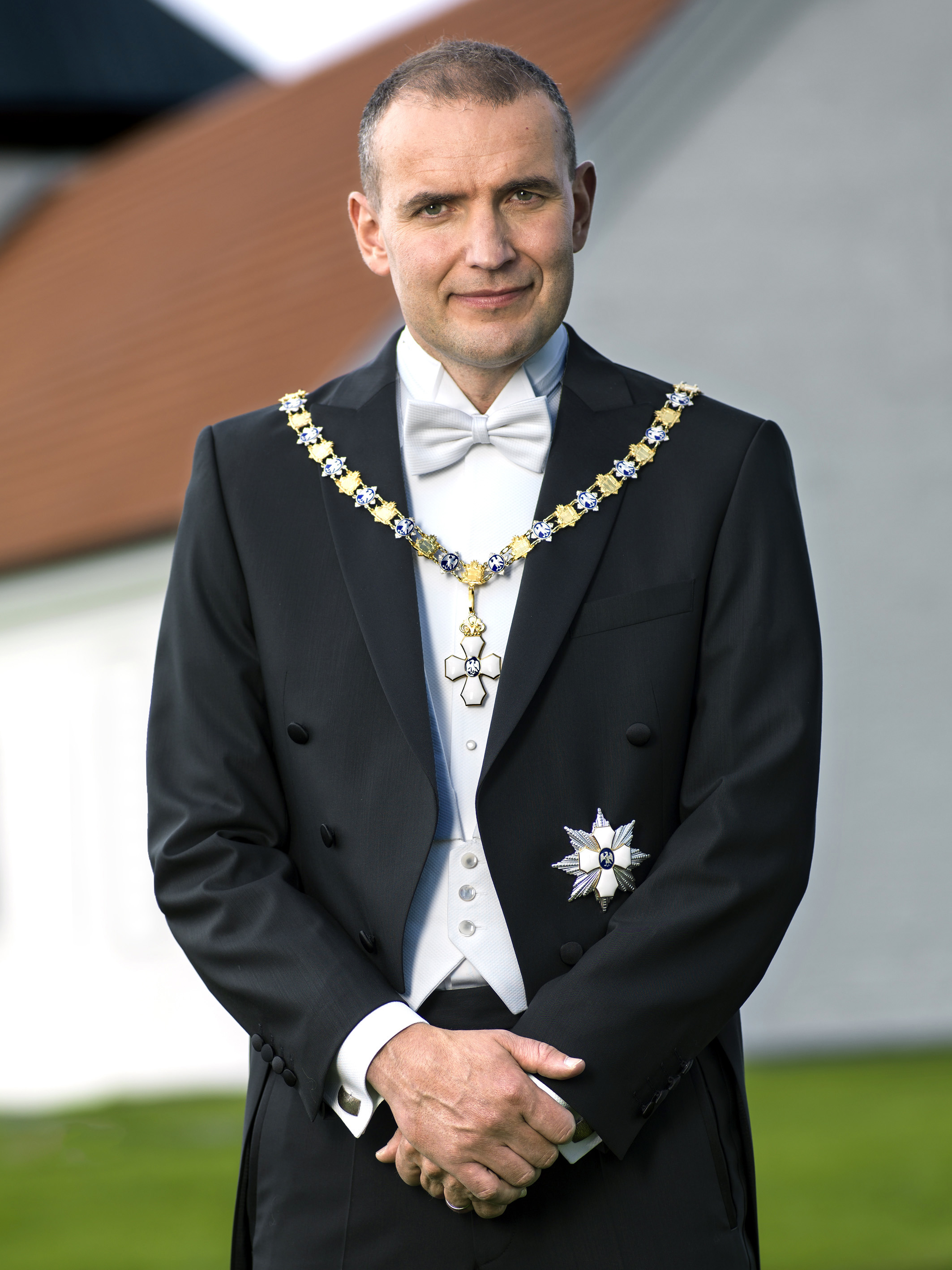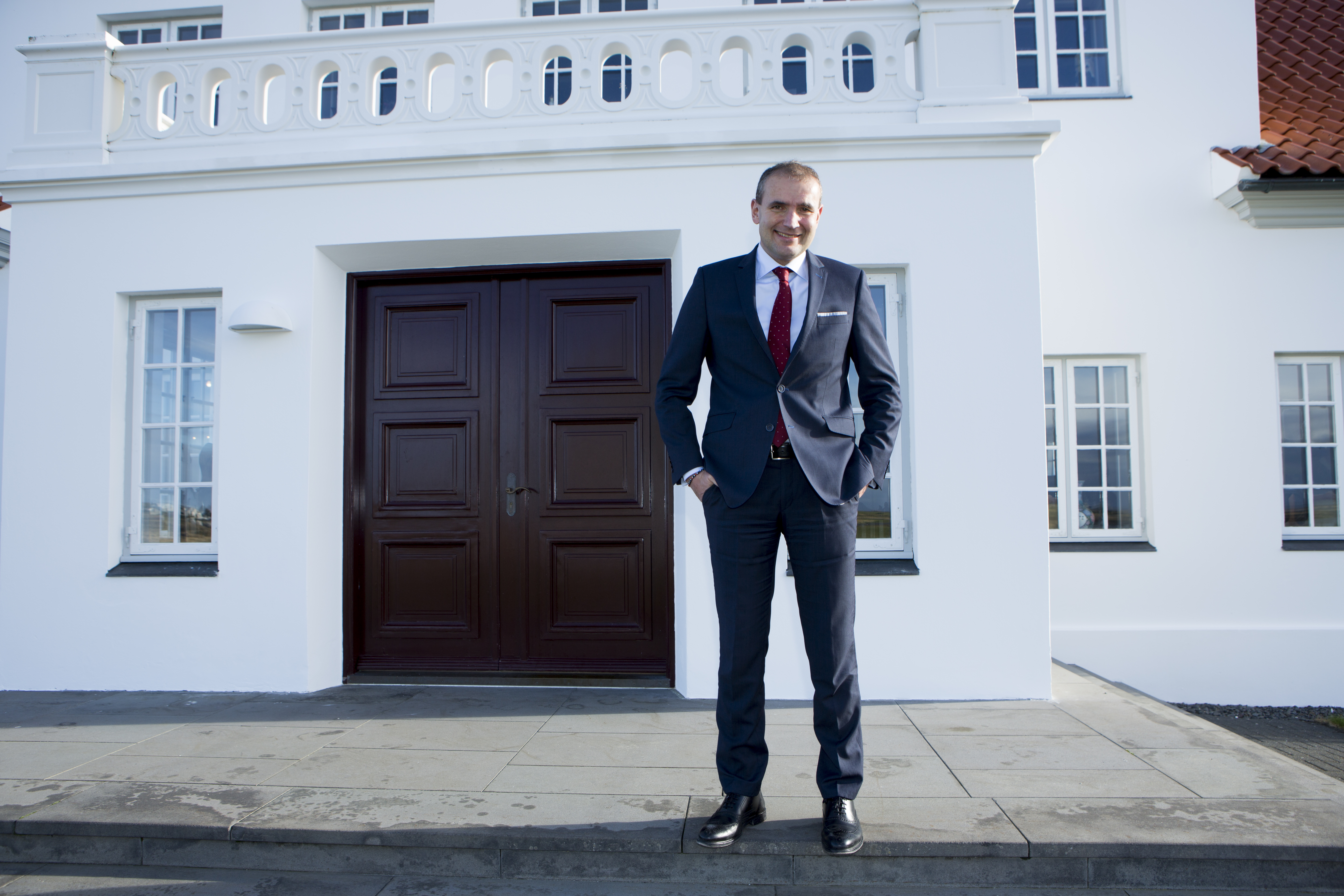 Guðni Th. Jóhannesson stendur á tröppum Bessastaða, haustið 2017. Ljósmynd: Spessi.