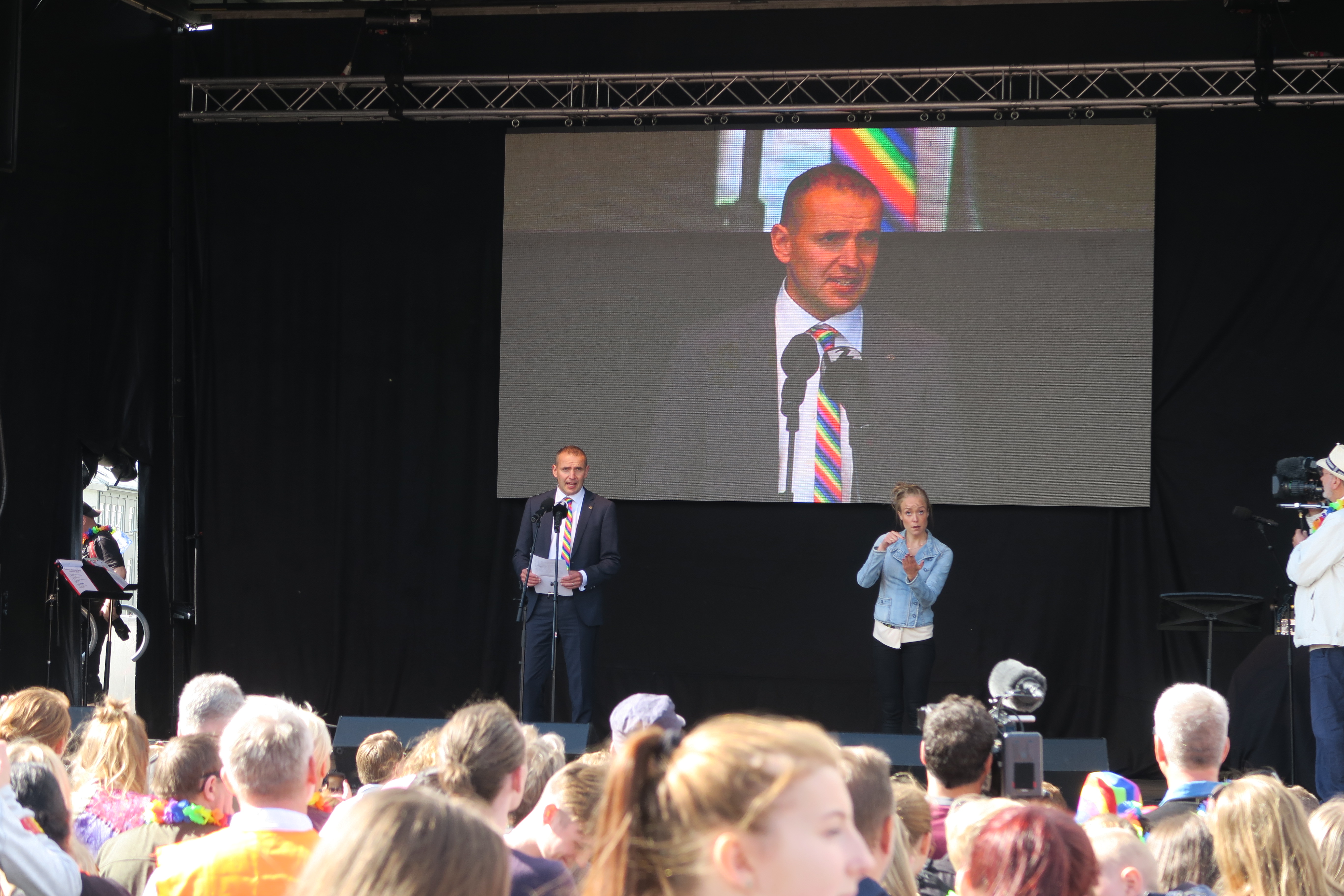 Guðni Th. Jóhannesson ávarpar gleðigöngu hinsegin fólks, fyrstu þjóðhöfðingja í heiminum, 6. ágúst 2016.