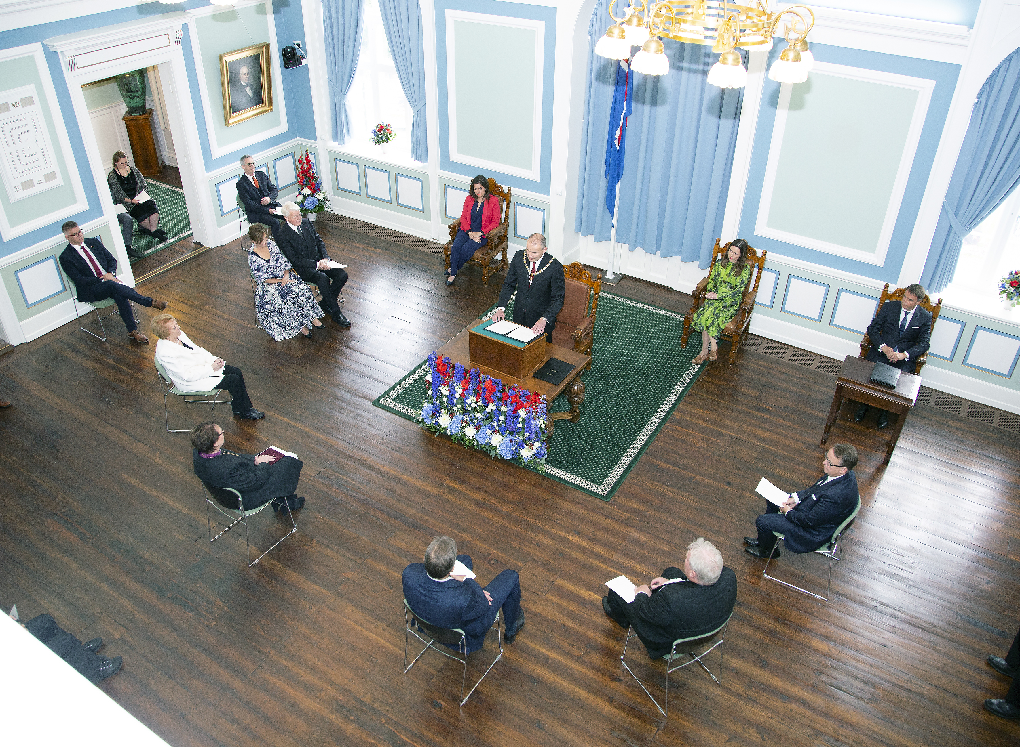 Frá innsetningu forseta í embætti 1. ágúst 2020. Fámennt var í sal Alþingis vegna kóvíðfarsóttarinnar.