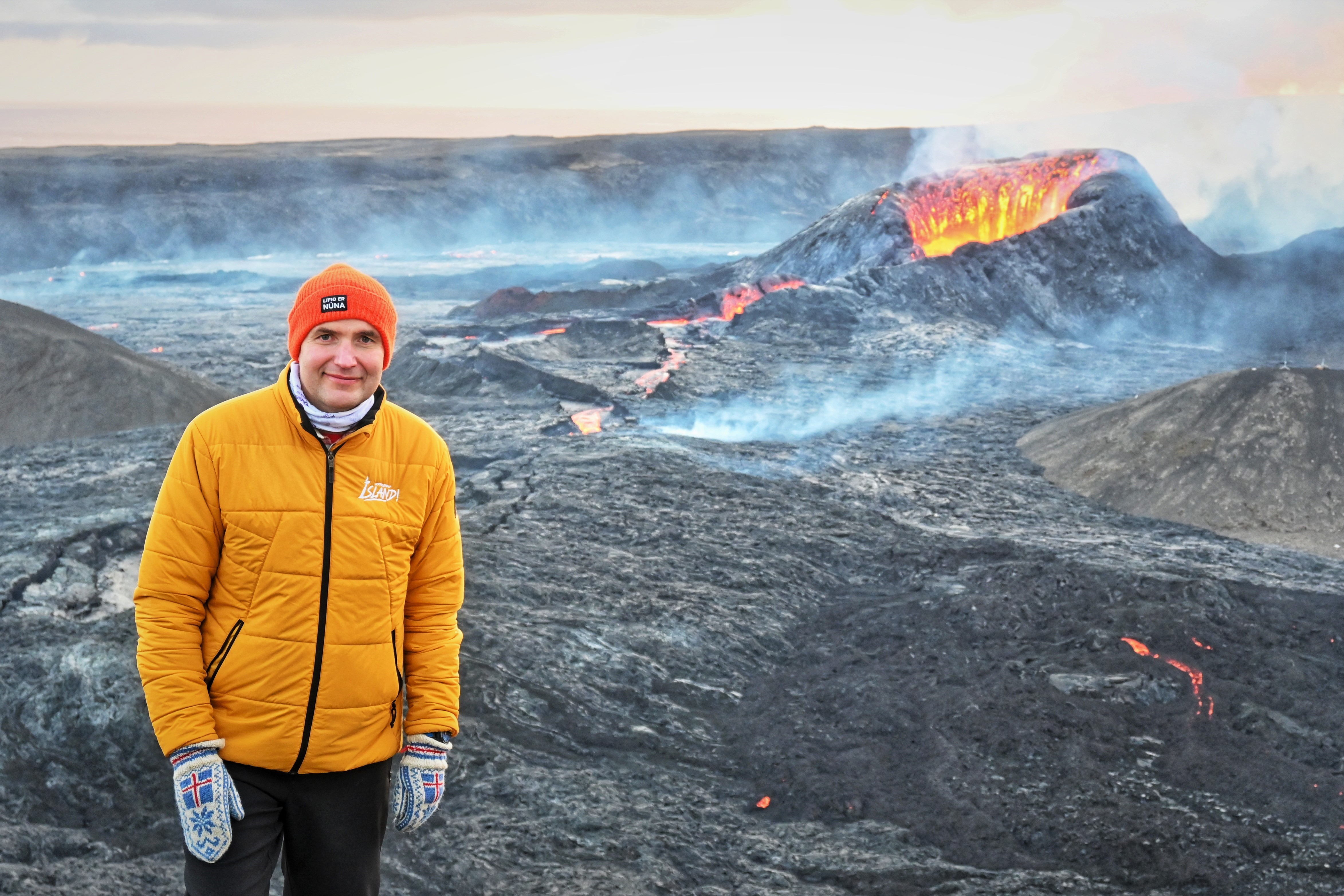 Forseti gengur að eldstöðvunum við Fagradalsfjall í október 2021. Ljósmynd: Skrifstofa forseta Íslands/Una Sighvatsdóttir