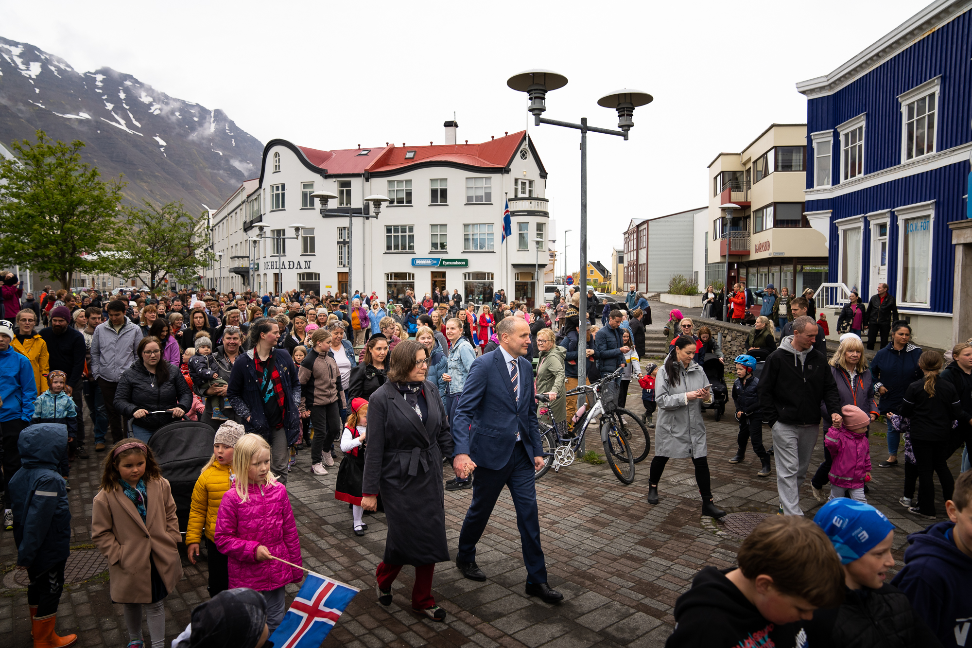 Forsetahjónum fagnað með skrúðgöngu í opinberri heimsókn til Ísafjarðar í júní 2022. Ljósmynd: Skrifstofa forseta Íslands / Haukur Sigurðsson