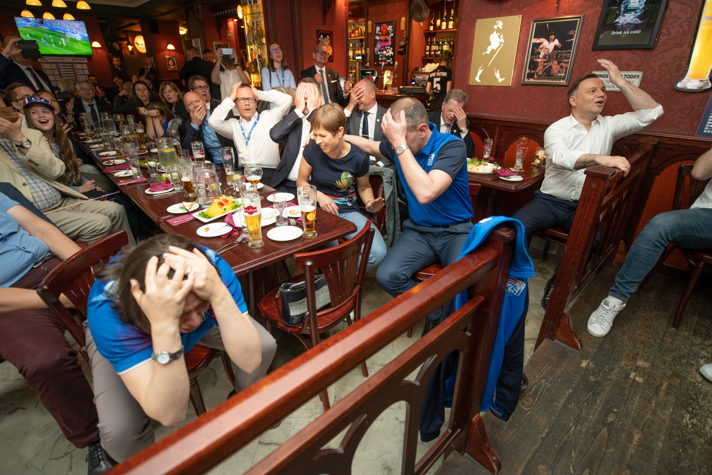 Í lok hátíðahalda vegna 100 ára afmæli eistneska lýðveldisins í júní 2018 sameinuðust forsetar Íslands, Eistlands, Finnlands, Póllands og Lettlands yfir fótboltaleik þar sem Íslands lék gegn Nígeríu á HM karla í Rússlandi. Ljósmynd: Forsetaskrifstofa Eistlands/Raigo Pajula