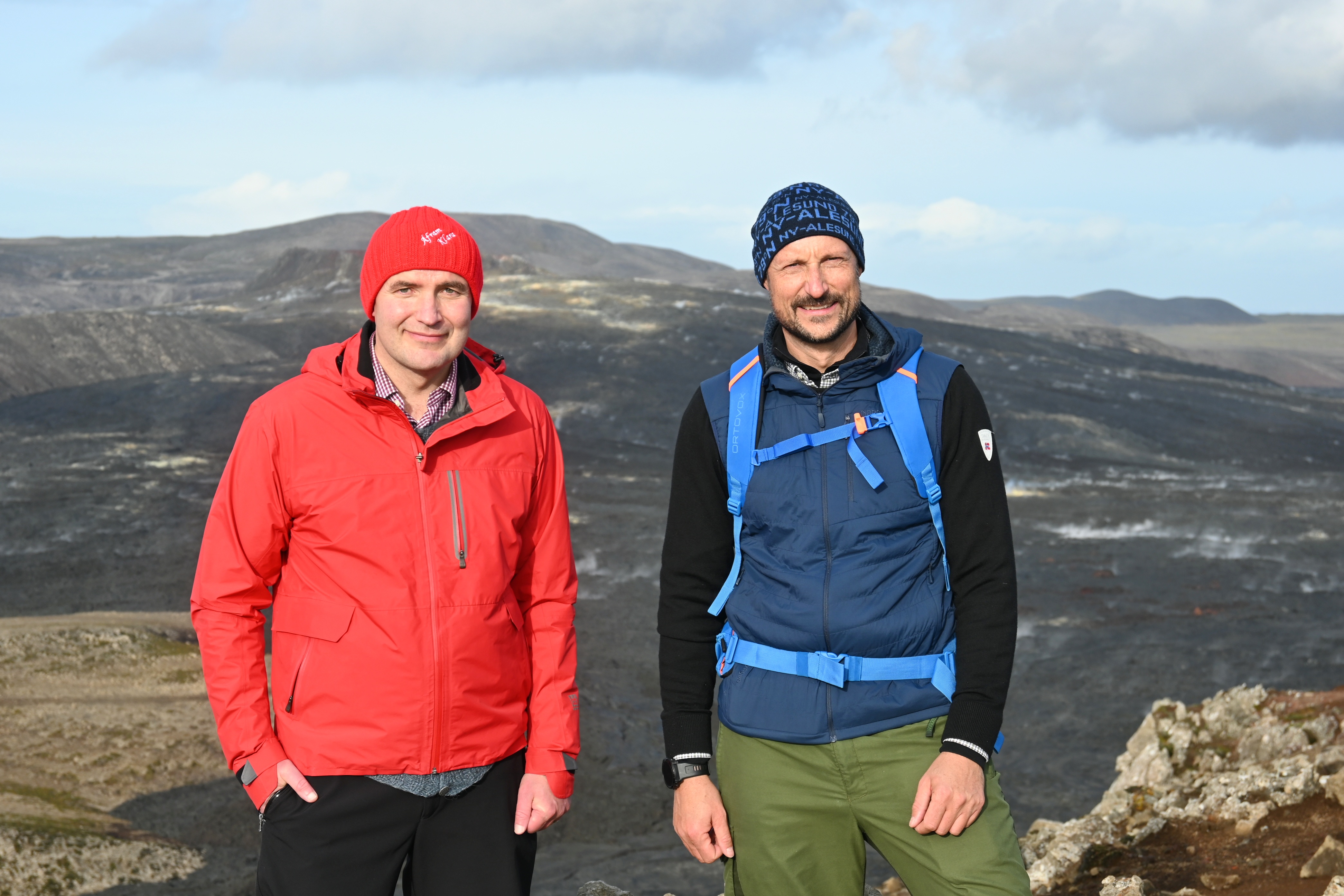 Forseti og Hákon krónprins Noregs kanna gosstöðvarnar við Fagradalsfjall í október 2022. Ljósmynd: Skrifstofa forseta Íslands/Una Sighvatsdóttir