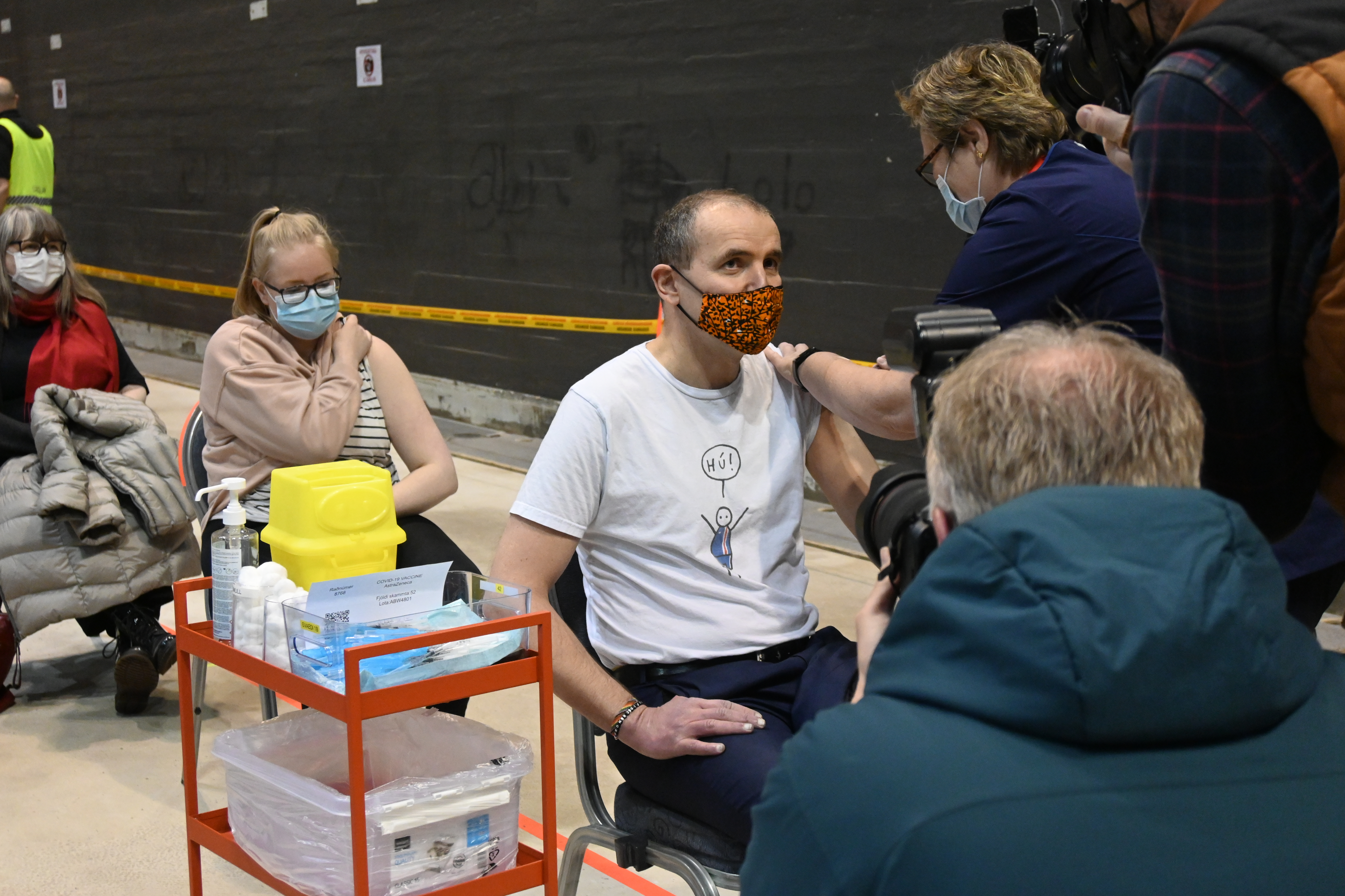 Forseti er bólusettur gegn covid-19 veirunni í Laugardalshöll í maí 2021. Ljósmynd: Skrifstofa forseta Íslands/Una Sighvatsdóttir