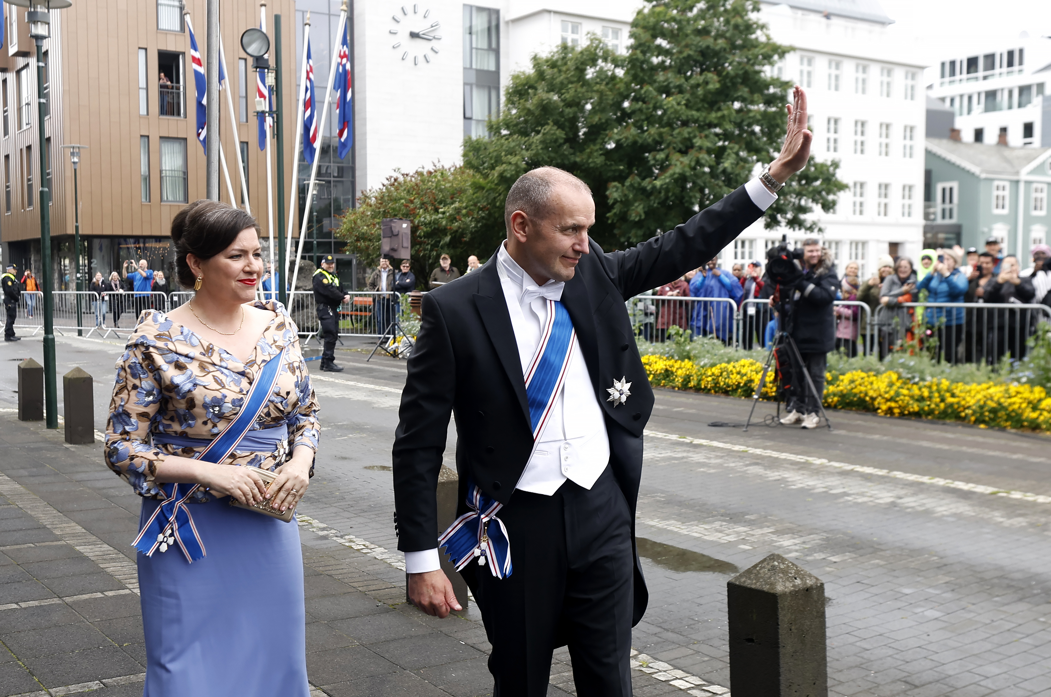 Guðni Th. Jóhannesson og Eliza Reid kveðja við innsetningu Höllu Tómasdóttur í embætti forseta, 1. ágúst 2024. Ljósmynd: Eggert Jóhannesson