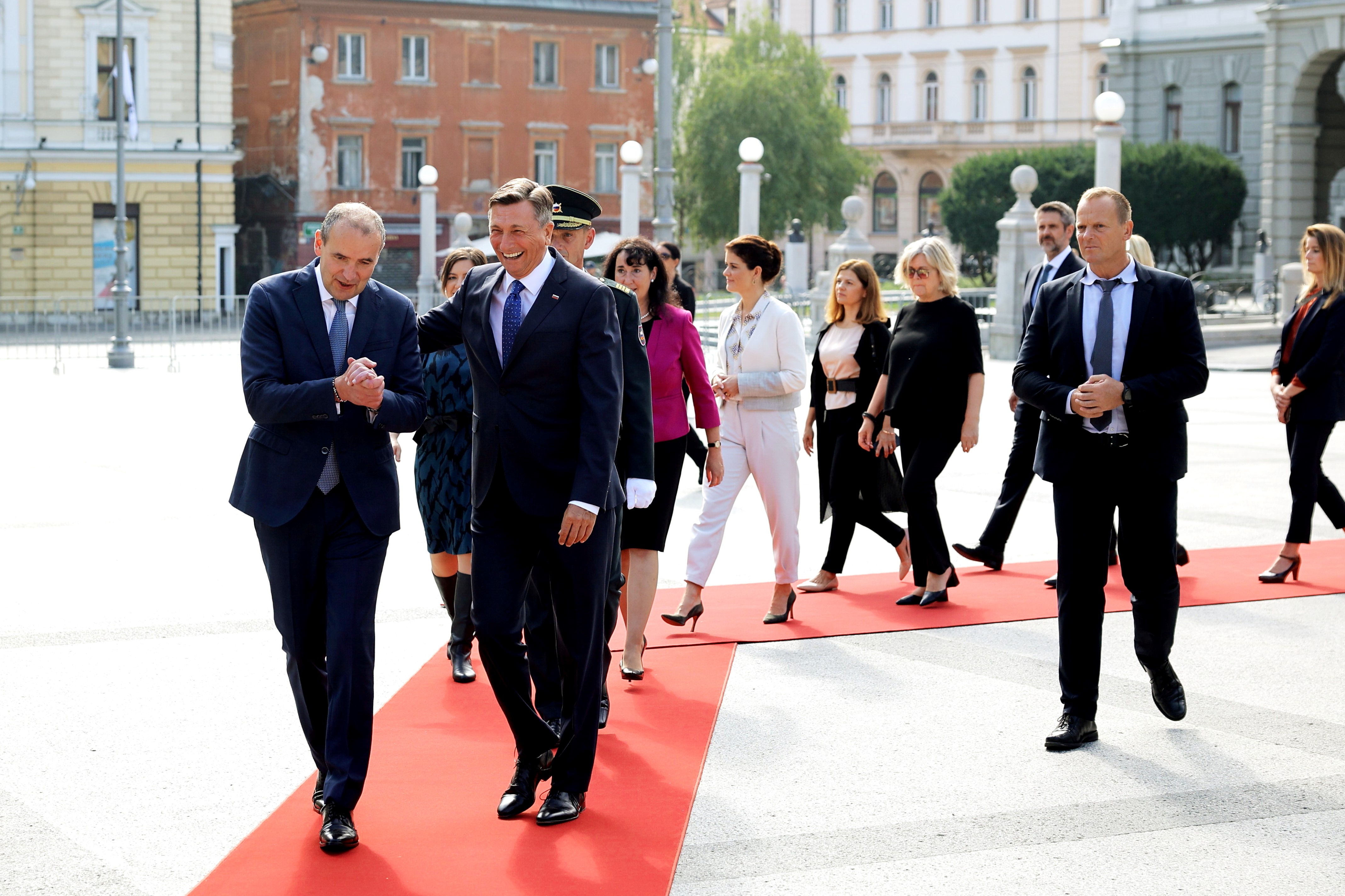 Borut Pahor, forseti Slóveníu, tekur á móti Guðna Th. Jóhannssyni í Ljublana við upphaf ríkisheimsóknar í ágúst 2022. Ljósmynd/forsetaskrifstofa Slóveníu