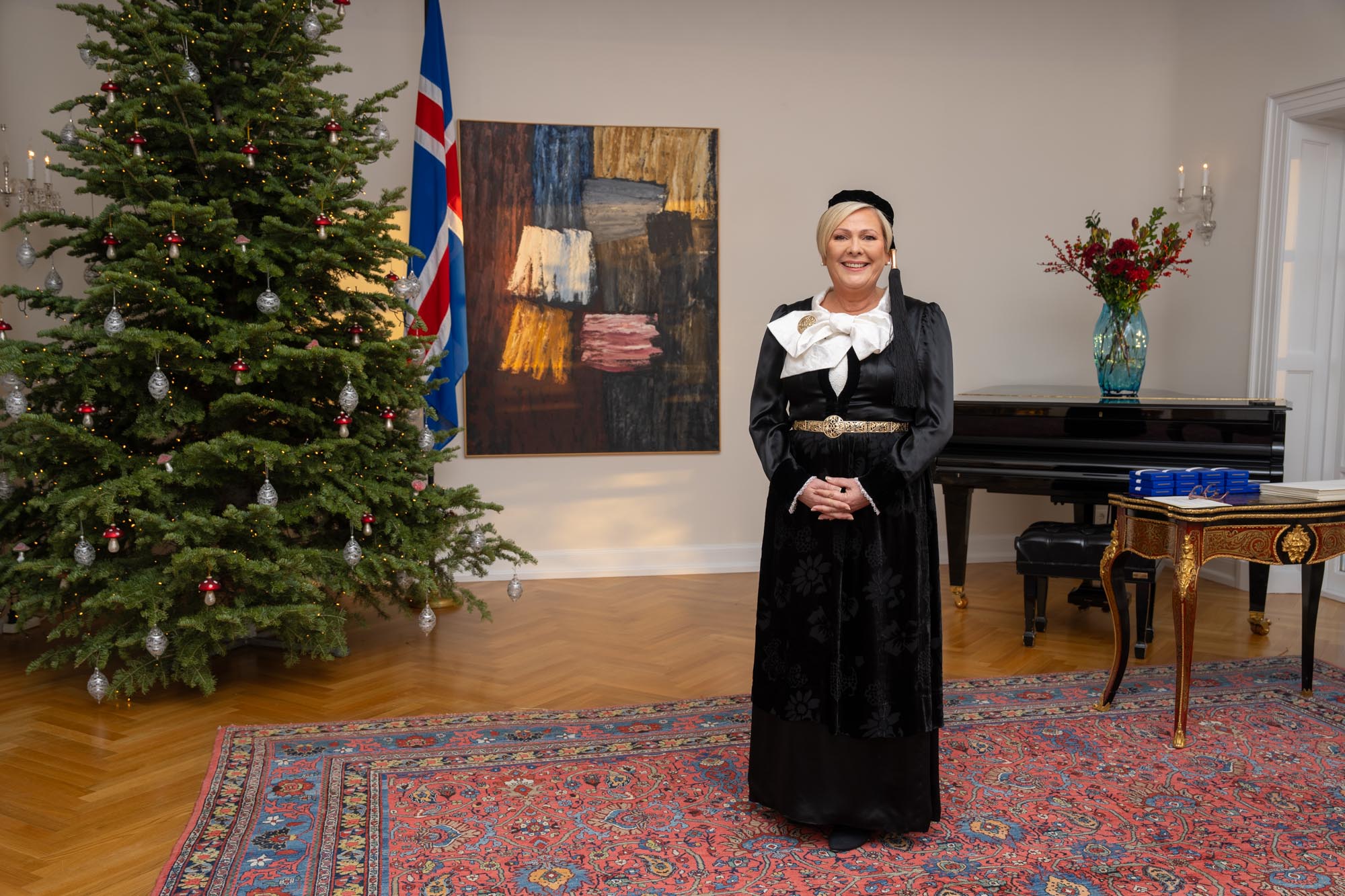 Peysufötin sem ég klæddist í ávarpinu og við orðuveitingu á nýársdag hafa líka vakið athygli. Það er gaman að segja frá því að þau átti langamma mín Guðbjörg (Gugga) Magnúsdóttir. Þjóðbúningasilfrið, nælu og stokkabelti með eikarmunstri, fékk ég að láni frá Þjóðdansafélaginu og Oddný Kristjánsdóttir, klæðskeri hjá Þjóðbúningastofu, aðstoðaði mig við samsetninguna. Ég kann þeim bestu þakkir fyrir.